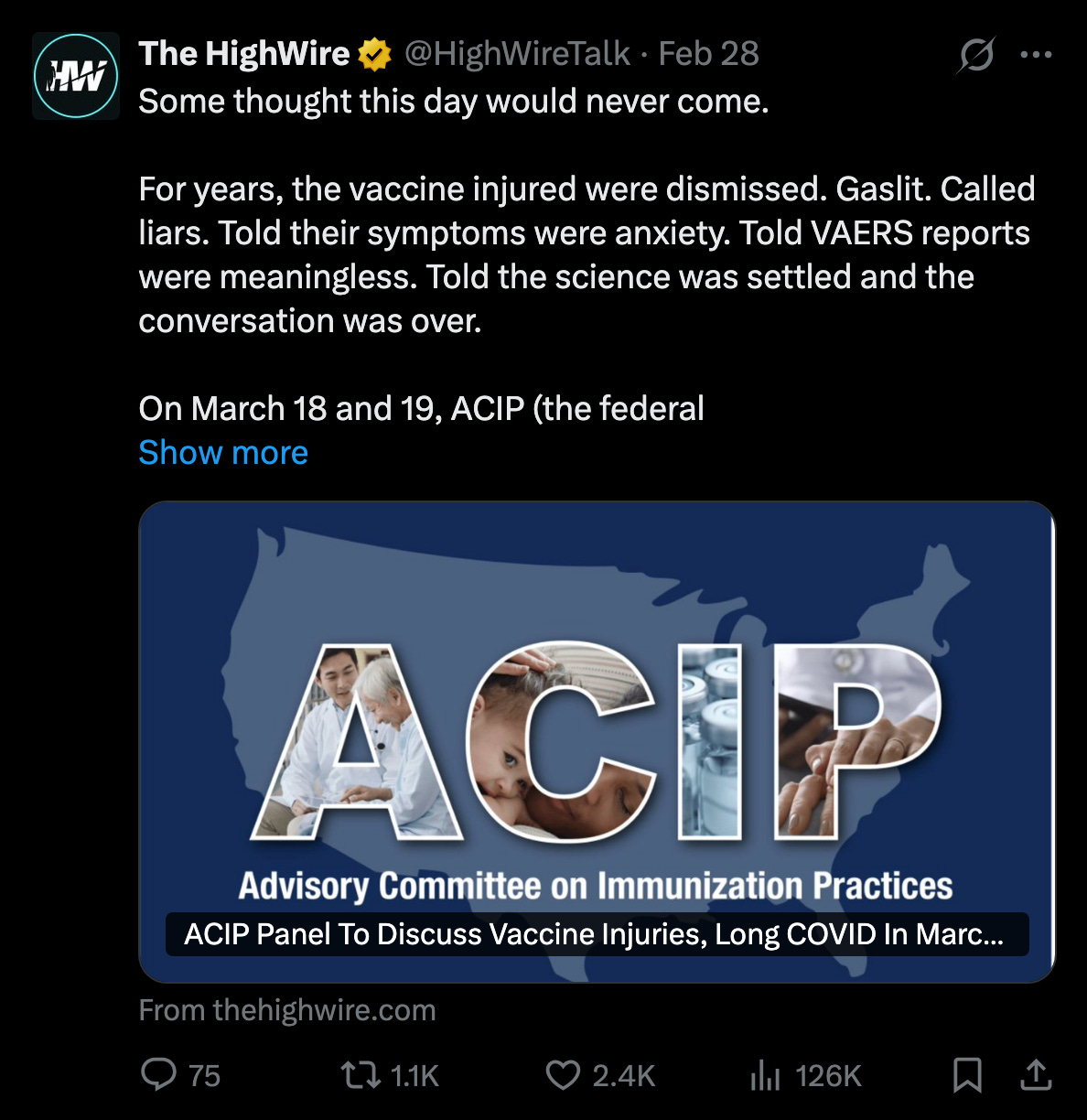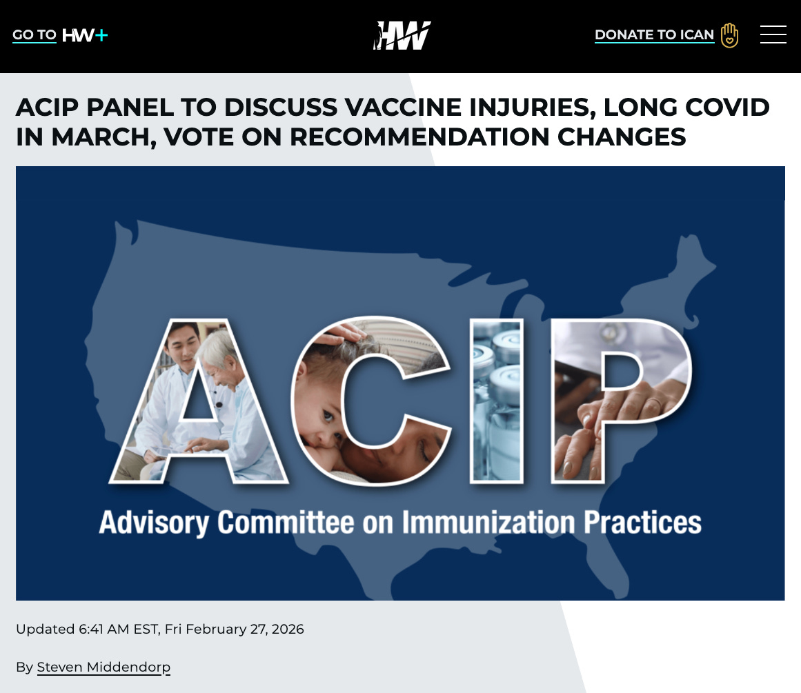 On March 18 and 19, ACIP (the federal vaccine advisory committee) will formally take up COVID-19 vaccine injuries.